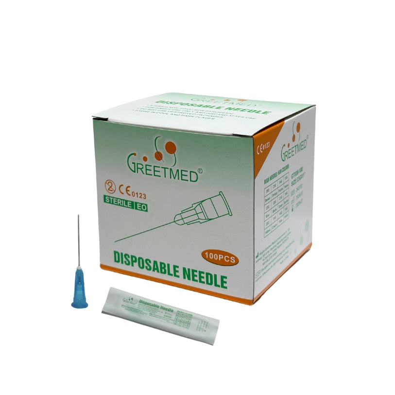 Aguja 23G x 1” (AZUL), estéril y descartable, conocida como aguja corta, ideal para inyecciones intramusculares superficiales, subcutáneas o para toma de muestras. Su tamaño ofrece un buen equilibrio entre comodidad y precisión, siendo muy utilizada en adultos, pediatría y uso veterinario. Compatible con jeringas Luer Slip (a presión) o Luer Lock (a rosca).