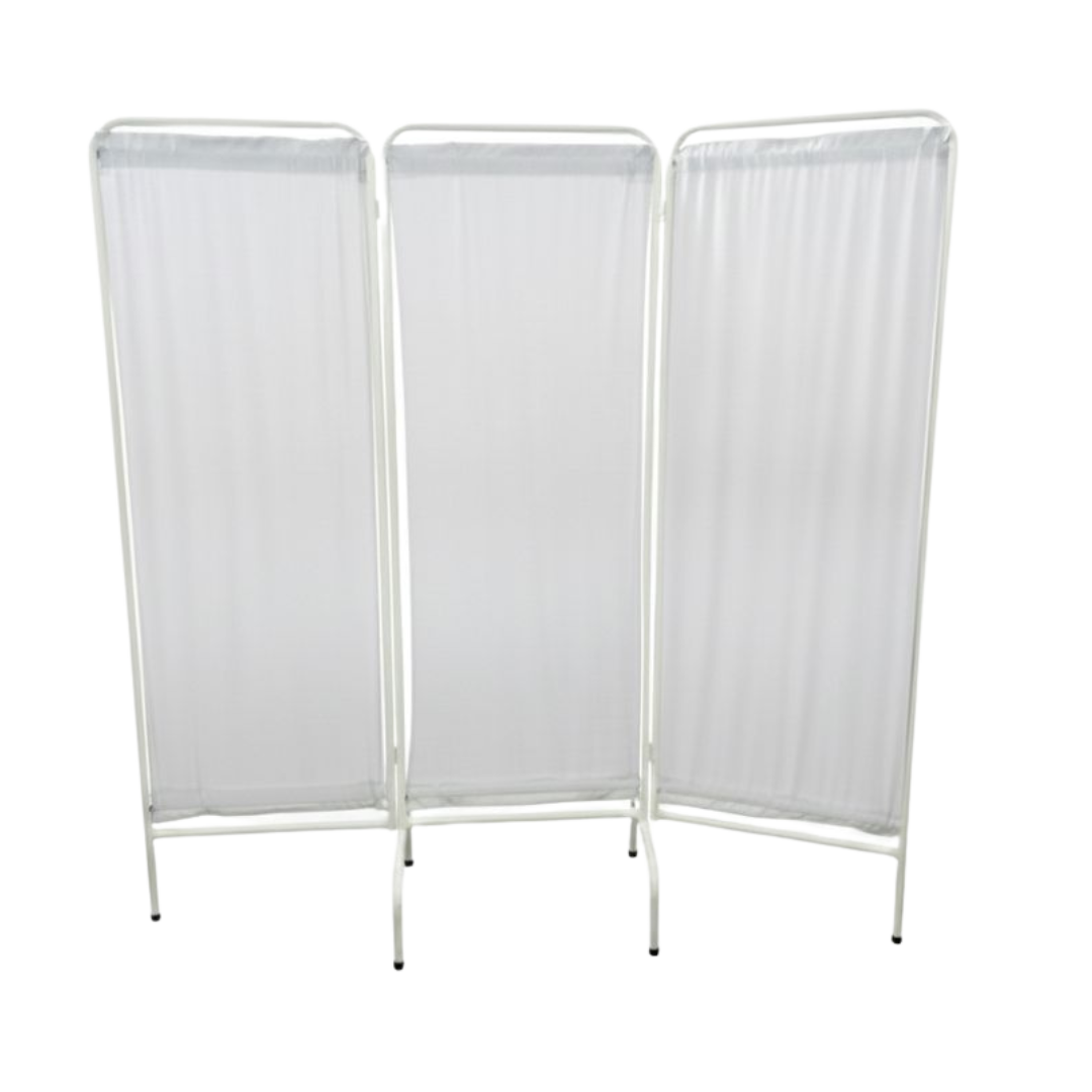 Biombo médico de tres cuerpos reforzado, estructura estable y resistente, ideal para consultorios y áreas de atención. Paneles con excelente nivel de privacidad. Fácil de mover y limpiar.