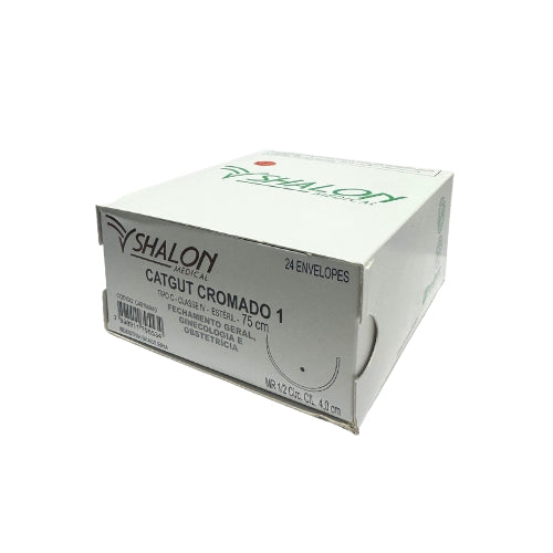 Sutura para cirugia absorbible Catgut Cromado 1 de la marca Shalon, de 75 cm de largo, tipo C, CLASE IV, con aguja MR cilíndrica de 4,0 cm, 1/2 círculo. Ofrece buena resistencia inicial y absorción progresiva, ideal para tejidos internos que no requieren retiro de puntos. De fácil manipulación, se presenta en envase individual estéril y es apta para uso en cirugía general, ginecológica y veterinaria. Grosor de hilo mas grueso que el Cromado 0