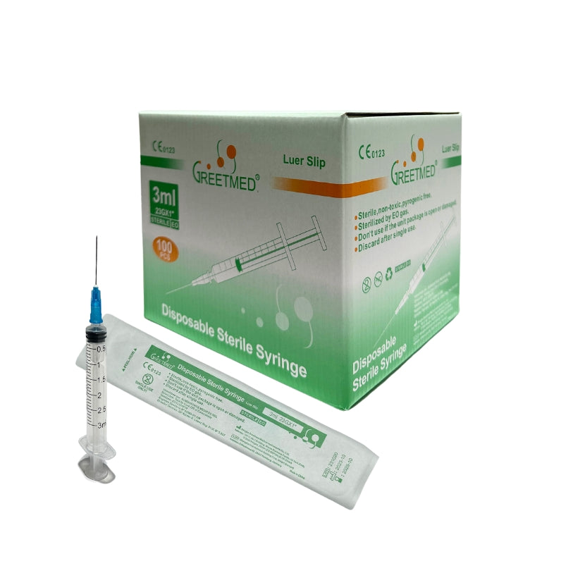 Jeringa de 3 cc con aguja 23G x 1” color (AZUL), estéril, de un solo uso y con conexión a presión (Luer Slip) o a rosca (Luer Lock). Equipada con aguja corta y fina, es ideal para inyecciones intramusculares superficiales, subcutáneas, aplicaciones de medicamentos, vacunas y extracción de muestras en humanos y animales. Ampliamente utilizada en entornos clínicos, hospitalarios y veterinarios.