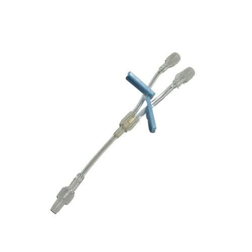 Conector médico estéril a rosca, diseñado para permitir la administración simultánea de dos soluciones intravenosas a través de una sola vía, gracias a su sistema de doble entrada con rosca de seguridad. Fabricado en material plástico de alta calidad, proporciona una conexión segura y sin fugas entre equipos de infusión, facilitando el manejo y la flexibilidad en tratamientos hospitalarios y clínicos. De un solo uso y fácil manipulación, es compatible con equipos estándar de infusión y transfusión.